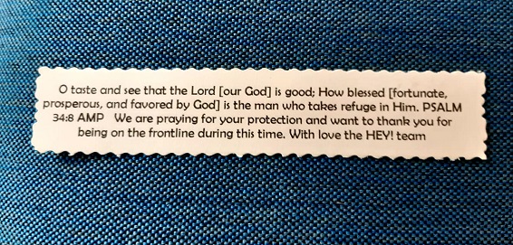 We added a chocolate to this verse just to show our appreciation to one of our Hey! Bible teachers Herkie and the night shift staff at Mediclinic Somerset West. We salute you!